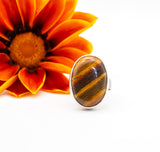 Αναδείξτε το μοναδικό σας στυλ με αυτό το εντυπωσιακό χειροποίητο δαχτυλίδι από ασήμι 925, διακοσμημένο με μια φυσική πέτρα μάτι της τίγρης διαστάσεων 26 x 19 χιλιοστών. Κάθε κομμάτι είναι μοναδικό, φτιαγμένο με προσοχή στη λεπτομέρεια, συνδυάζοντας την εκλεπτυσμένη τέχνη της αργυροχρυσοχοΐας με τη δυναμική ενέργεια του πολύτιμου λίθου.